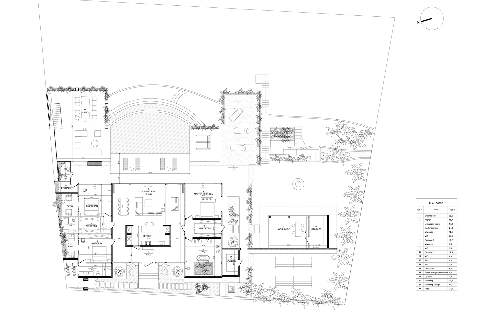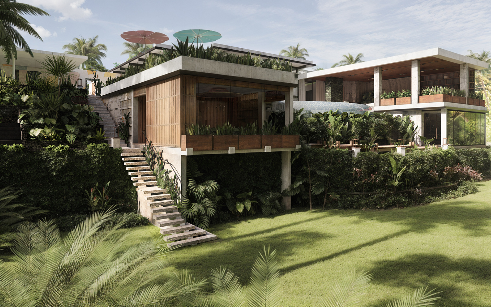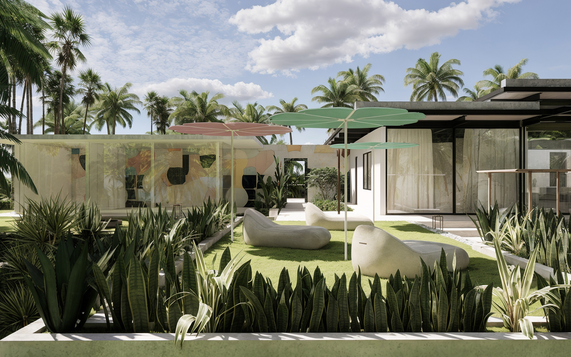 Дополнительной задачей является интеграция художественных мотивов клиента — поскольку клиент является художником — в дизайн виллы, чтобы выразить его индивидуальность и сформировать уникальную дизайнерскую концепцию, которая продолжается и в интерьере. Добавление художественной мастерской усиливает уникальный творческий характер комплекса, обеспечивая приватность и функциональную значимость.