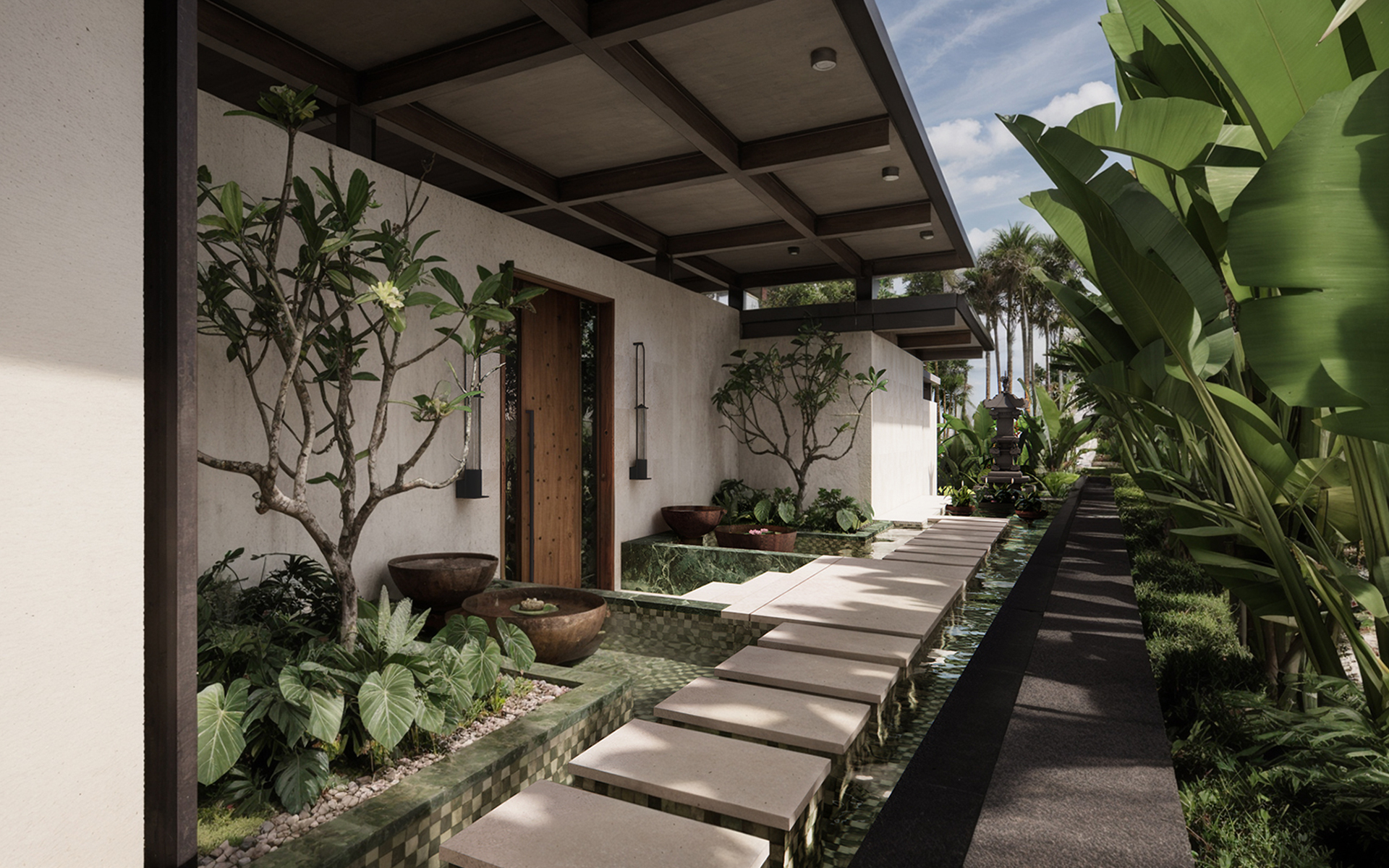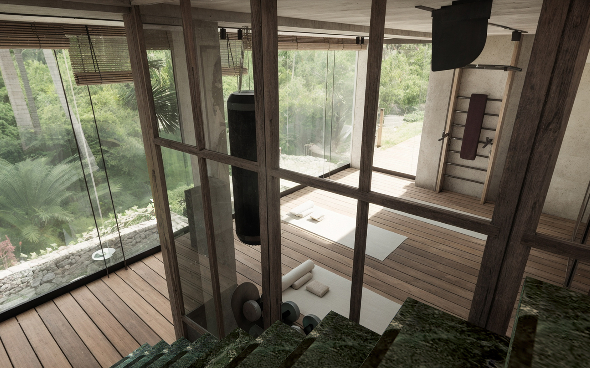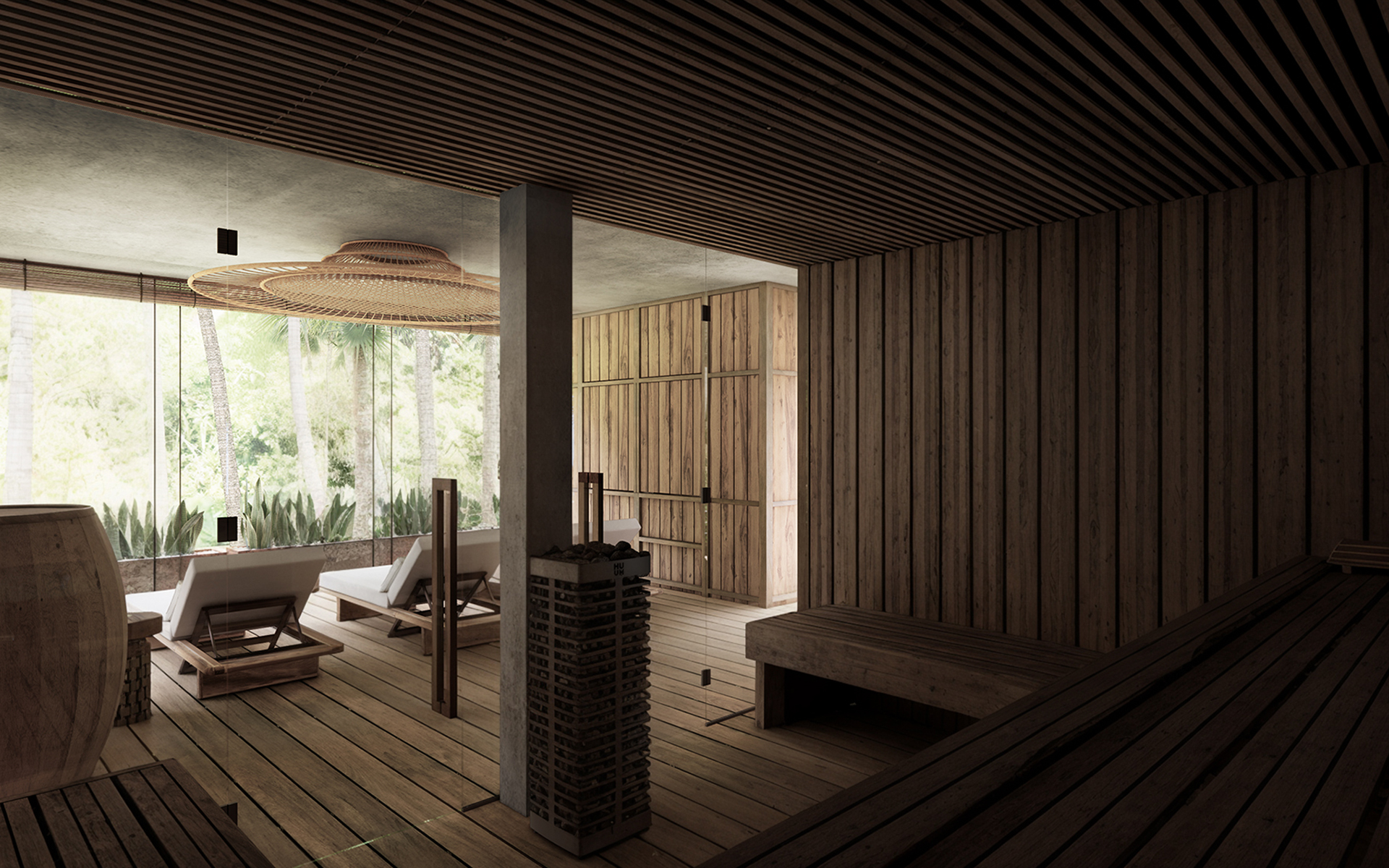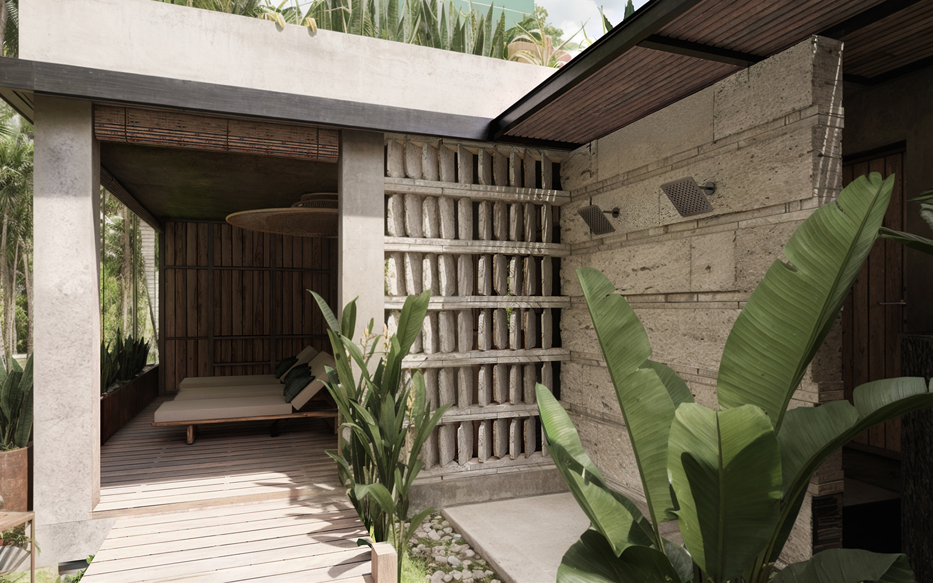 Проект направлен на создание гармоничной, функциональной и эстетически выразительной среды, в которой внутренние и внешние пространства органично перетекают друг в друга. Основная идея заключается в реорганизации пространства вокруг бассейна, делая его центральным элементом, связывающим интерьер и экстерьер. Акцент на природных элементах и мотивах подчёркивает связь виллы с окружающим ландшафтом. Нижний уровень будет преобразован в спа-зону со всеми необходимыми удобствами и удобными связями с верхним уровнем.